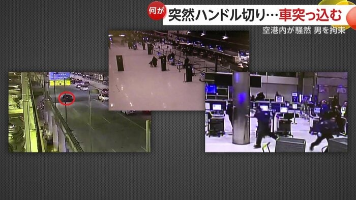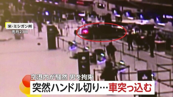 アメリカ・ミシガン州の空港で、ターミナル内に車が突入する瞬間がカメラに捉えられた。