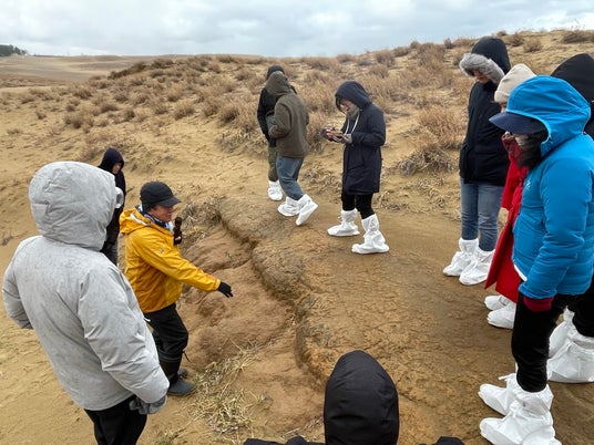 3日目は、宮崎理沙主任研究員(宇宙航空研究開発機構)による月内部進化に関する総合討論、JAXAの月惑星探査データ解析グループ(JLPEDA)グループの活動紹介、その後、鳥取砂丘へ場所を移し、小玉芳敬教授(鳥取大学)による砂丘ガイドツアー、鳥取砂丘月面実証フィールド「ルナテラス」の見学と、充実の3日間となりました。