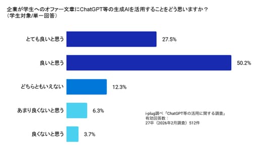 学生と企業をつなげる新卒オファー型就活サービス「OfferBox(オファーボックス)」を運営する株式会社i-plug(本社:大阪市淀川区、代表取締役 CEO:中野智哉)は、2027年卒業予定の学生(以下、27卒学生)および新卒採用を実施する企業を対象に、「27卒学生と企業を対象としたChatGPT等の活用に関する調査」を実施しました。