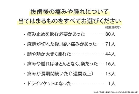 - 抜歯後の痛みや腫れの実態(複数選択可)