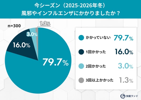- 今シーズン、風邪・インフルエンザに「かかっていない」人は79.7%