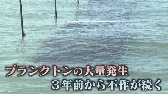 有明海ではプランクトンの大量発生により、3年前からノリの不作が続いている。