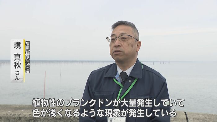 今季の状況について『福岡有明海漁連』の境真秋さんは「植物性のプランクトンが大量発生していて、色が浅くなるような現象が発生している」と不安な表情を見せる。