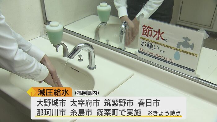 県内各地で水不足が深刻化していて、現在、福岡県内では、大野城市や太宰府市など7つの自治体で蛇口の水圧を弱める減圧給水が行われているほどだ。