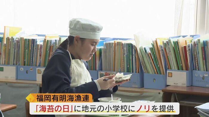 子どもたちにノリの美味しさを知ってもらおうと福岡有明海漁連が毎年『ノリの日』の2月6日に地元の小学校に提供している。