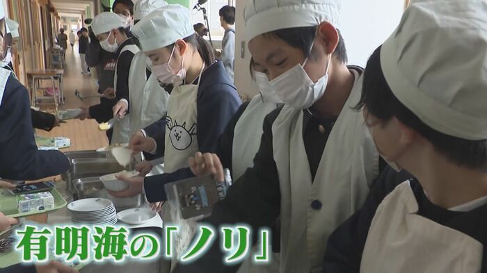 2月6日、柳川市の二ッ河小学校の給食に登場したのは、有明海でとれたノリ。