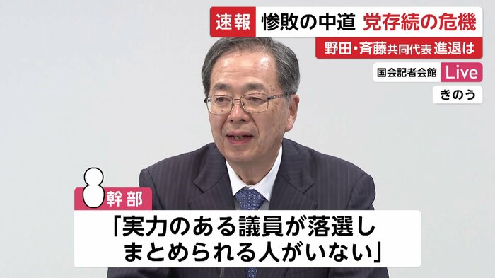 ある幹部は今回の敗戦について、「壊滅だ。党としての存在意義が問われる結果になった」と危機感を示している。
