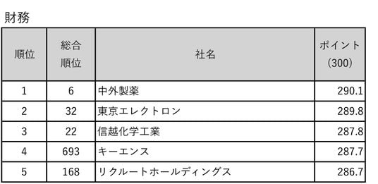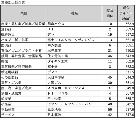 東洋経済新報社「財務・企業評価チーム」が作成。対象は『CSR企業総覧(雇用・人材活用編)(ESG編)』2026年版掲載の1656社(上場1578社、未上場78社)。調査は2025年6~10月に実施。CSR分野の「人材活用」(100点満点)、「環境」(同)、「企業統治+社会性」(「企業統治」と「社会性」の合計で100点満点)の3つ(計300点満点)に、「財務」(収益性、安全性、規模、各100点。計300点満点)を加え、総合ポイント600点満点で評価。「財務」以外の項目は基本的にアンケート内容を基に評価している。ただし、一部アンケート未回答でも公開情報のみで評価を行っている企業もある。評価は原則として加点方式で行い、回答内容による減点はない。「人材活用」「環境」「企業統治+社会性」の得点はトップ企業を100点に調整。「財務」は多変量解析の主成分分析手法を用い、収益性、安全性、規模の3つの分野で評価している。