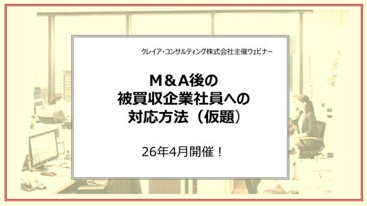 また本調査の分析結果を踏まえて、「M&A後の被買収企業社員への対応方法(仮題)」をテーマとするウェビナーを今年4月に開催致します。