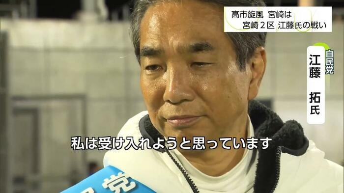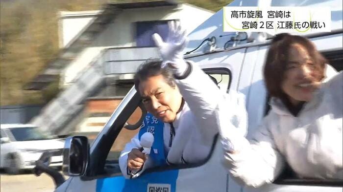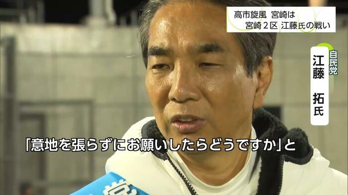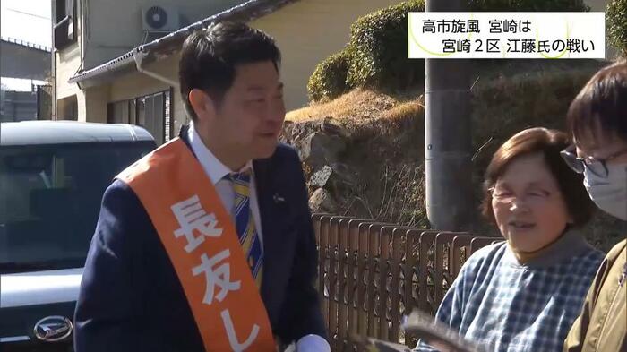 宮崎2区では、国民民主党の長友慎治さんが台頭。1年3カ月前の選挙では、江藤さんは長友さんに約1万3000票差にまで迫られていた。
