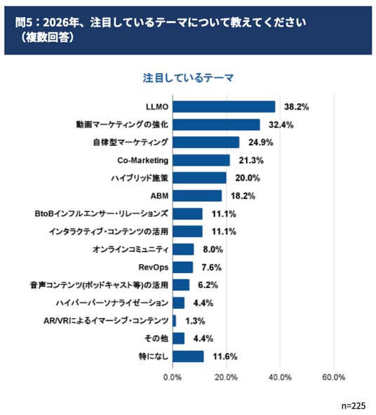 国内BtoBビジネス企業におけるマーケティング施策の実態や、2026年の注目テーマを明らかに。
