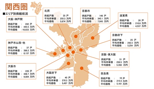 集計対象エリアは首都圏及び関西で、それぞれのエリア別相場情報、需給動向、着工件数等を集計しました。