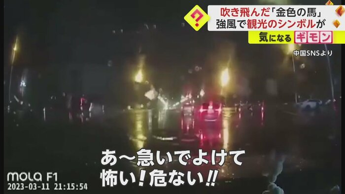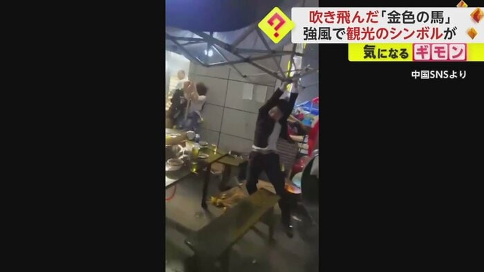 倒れてきたのは、中国が観光のシンボルとしている、金色に輝く巨大な馬の像だ。
