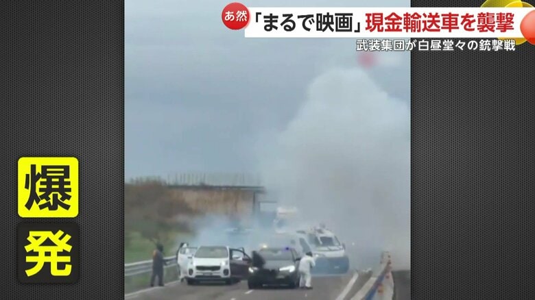 「まるで映画」現金輸送車を白昼堂々“襲撃・爆破”…覆面武装…