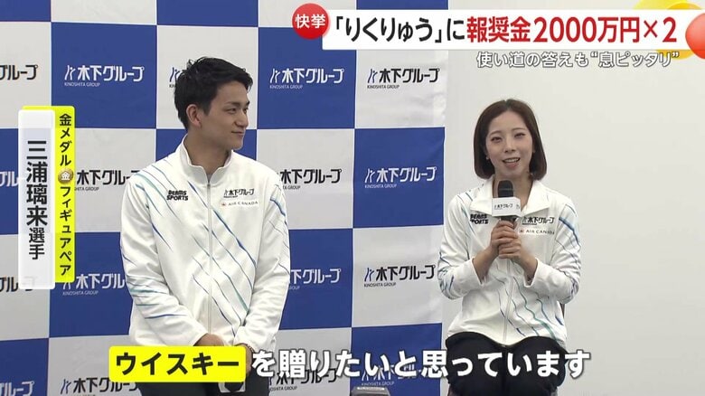 りくりゅうペアに報奨金2000万円×2 所属先会社「大事に使っ…