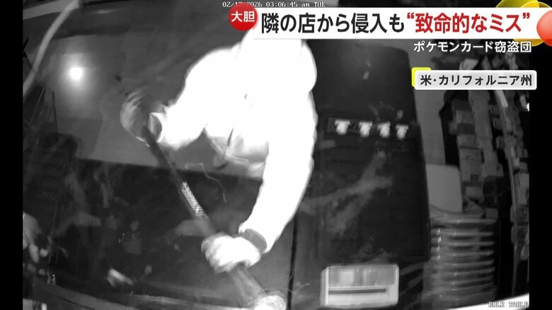 ポケモンカード窃盗団が2800万円相当のカード盗むも“痛恨のミ… ギャラリー 1/11 記事に戻る 店内に侵入した覆面の3人組 2/11 記事に戻る ケースを破壊してカードを盗む 3/11 記事に戻る 携帯電話を探す様子 4/11 記事に戻る 発見された犯人のものとみられる携帯電話 5/11 記事に戻る 6/11 記事に戻る 7/11 記事に戻る 隣の店から壁を壊して侵入した3人組 8/11 記事に戻る 犯行時間はわずか10分 9/11 記事に戻る 待たせていた車に乗って逃走した3人組 10/11 記事に戻る 11枚目以降の画像を見る 1 2