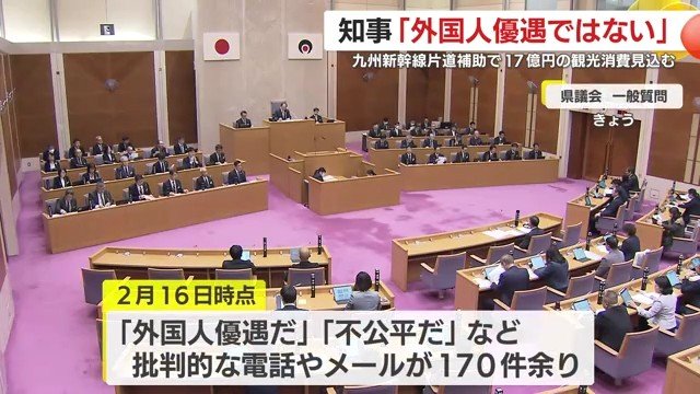「外国人優遇ではない」県知事の説明 九州新幹線運賃助成で地… ギャラリー 1/7 記事に戻る 2/7 記事に戻る 3/7 記事に戻る 4/7 記事に戻る 5/7 記事に戻る 6/7 記事に戻る 7/7 記事に戻る