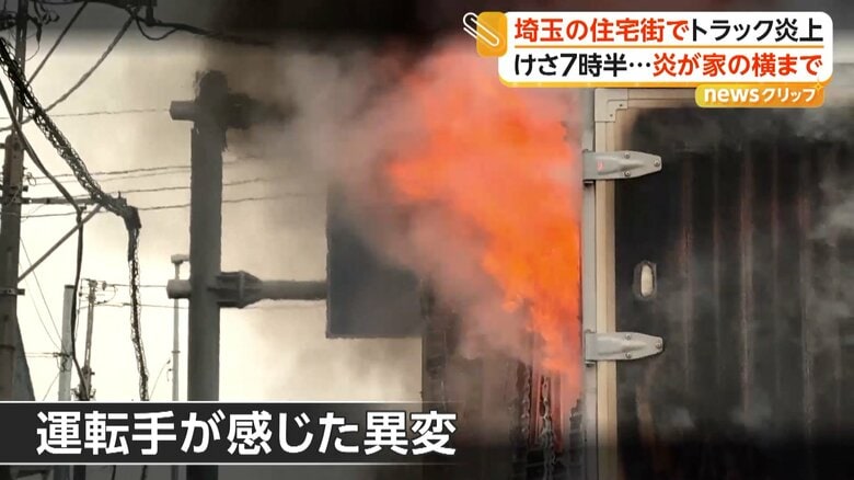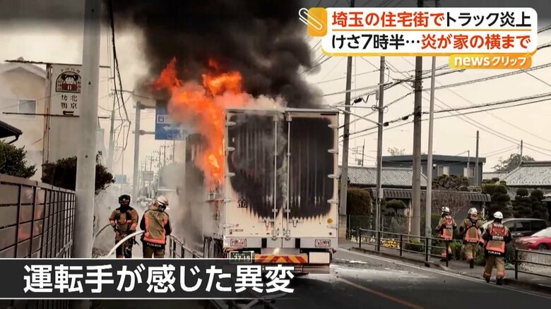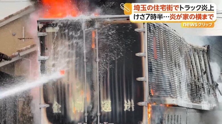 トラックが炎上し住宅に火の手が迫る 食品用ラップ積んで走行…