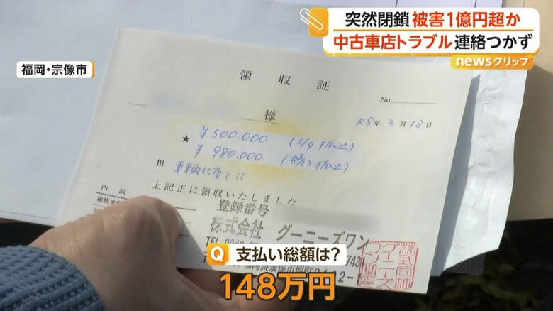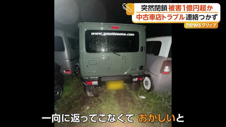「連絡つかない」代金支払うも納車されず 中古車販売店が突然… ギャラリー 1/8 記事に戻る 2/8 記事に戻る 車の受け渡しを求め、置き手紙を残す人も… 3/8 記事に戻る 4/8 記事に戻る 5/8 記事に戻る 「勝手にナンバーを変えられた」と被害を訴える人も 6/8 記事に戻る グーニーズワンの経営者に電話する、店と取引関係にあった人 7/8 記事に戻る 8/8 記事に戻る