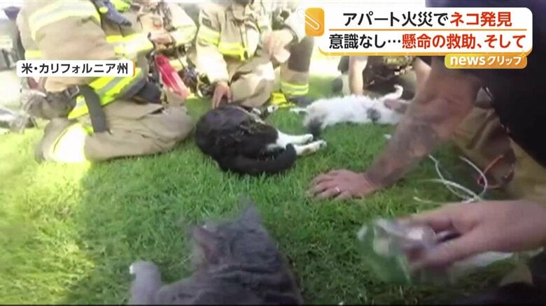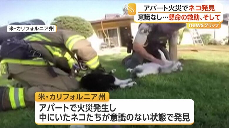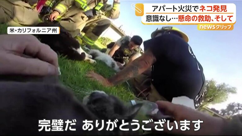 火災に巻き込まれたネコを「人工呼吸」と「酸素マスク」で救助… ギャラリー 1/11 記事に戻る 消防隊員が声をかけ体を揺さぶるも動かないネコ(CAL FIRE/Riverside County Fire Department) 2/11 記事に戻る 人工呼吸を試みる(CAL FIRE/Riverside County Fire Department) 3/11 記事に戻る 酸素をネコに吸入させる消防隊員(CAL FIRE/Riverside County Fire Department) 4/11 記事に戻る 救出されたネコたち(Riverside County Sheriff's Office) 5/11 記事に戻る 6/11 記事に戻る 7/11 記事に戻る 8/11 記事に戻る 9/11 記事に戻る 10/11 記事に戻る 11枚目以降の画像を見る 1 2