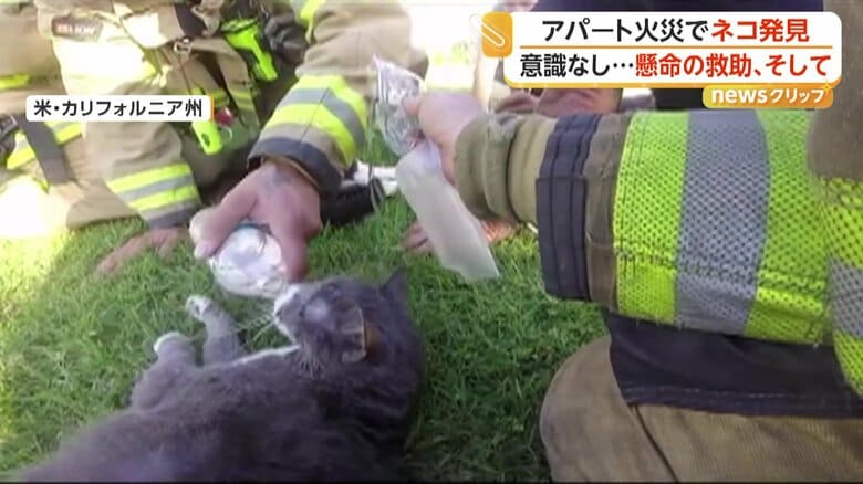 火災に巻き込まれたネコを「人工呼吸」と「酸素マスク」で救助…