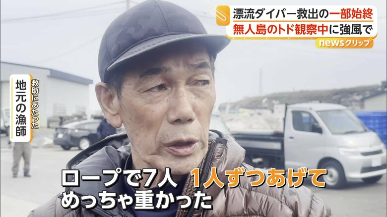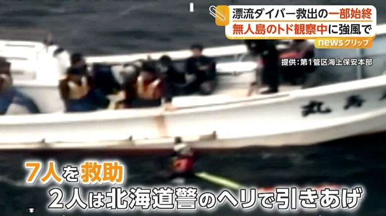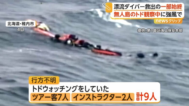 漁師「1人ずつあげてめっちゃ重かった」 トド観察ツアー中の… ギャラリー 1/13 記事に戻る 海上保安庁の航空機が撮影した救助の様子 2/13 記事に戻る 3/13 記事に戻る 海上保安庁の船と漁船がダイバーたちに接近 4/13 記事に戻る 5/13 記事に戻る 6/13 記事に戻る 7/13 記事に戻る 肩を寄せ合うように浮具につかまり、波に揺られるダイバーたち 8/13 記事に戻る 行方不明となったトドウォッチングのツアー中だったダイバー合わせて9人(4日、北海道・稚内沖) 9/13 記事に戻る 強風と高波で約5km流され行方不明となったダイバー合わせて9人 10/13 記事に戻る 11枚目以降の画像を見る 1 2