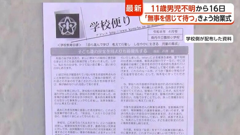 京都の小学生男児 始業式で校長「無事を信じて待ちましょう」…