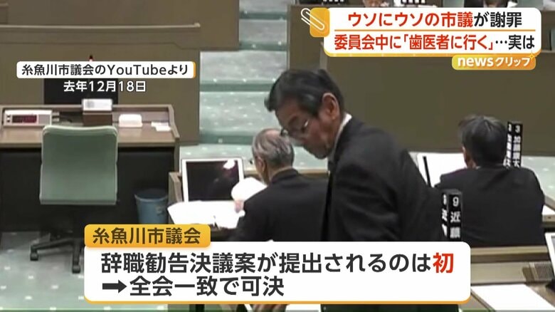 市議が「歯医者に行く」と忘年会へ 発覚後の聴取や支援者にも…