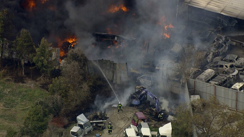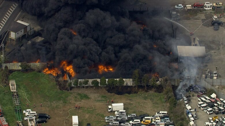 【速報】資材置き場で火事 黒煙が上空まで立ち上り激しく燃え…