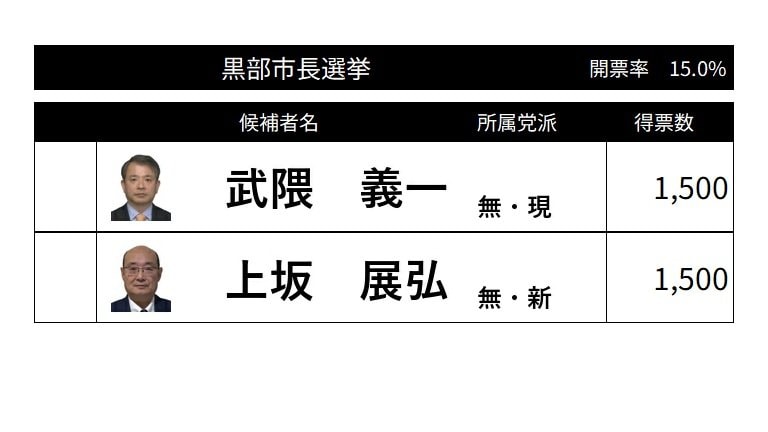 【開票速報】黒部市長選挙 午後9時半現在