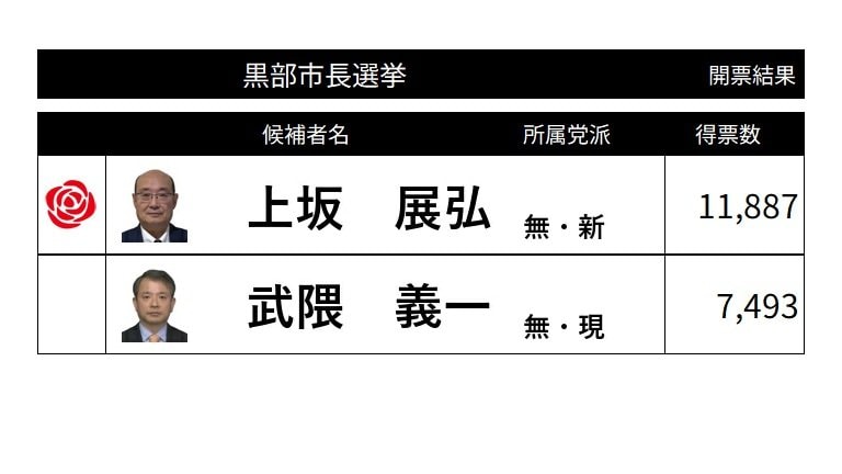 【開票結果】黒部市長選は新人の上坂展弘さん(64)が初当選 「… ギャラリー 1/4 記事に戻る 2/4 記事に戻る 初当選を果たし支援者とバンザイする上坂さん(12日) 3/4 記事に戻る 支援者から花束を受け取り笑顔を見せる上坂さん(12日) 4/4 記事に戻る