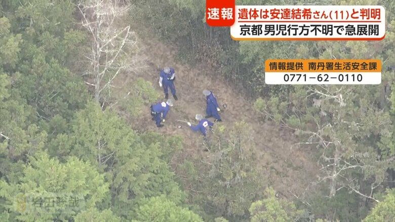 京都・南丹市小学生行方不明 “子どもとみられる遺体”は安達… ギャラリー 1/57 記事に戻る 発見された遺体は安達結希さん(11)と判明した 2/57 記事に戻る 3/57 記事に戻る 「84」と数字の入ったトレーナーを着用していた 4/57 記事に戻る 人通りは多くはないと話す近隣住民 5/57 記事に戻る 6/57 記事に戻る 現場付近には誰かが手向けたとみられる花も 7/57 記事に戻る 安達さんの通う小学校は臨時休校に 8/57 記事に戻る 9/57 記事に戻る 10/57 記事に戻る 11枚目以降の画像を見る 1 2 3 4 5 6