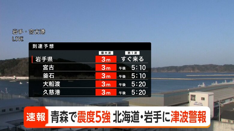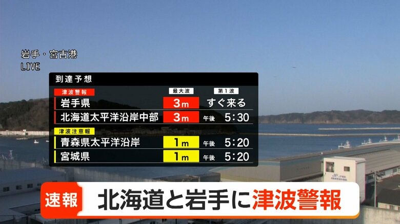 【速報】北海道と岩手県沿岸に津波警報 津波の最大高さ3メー…