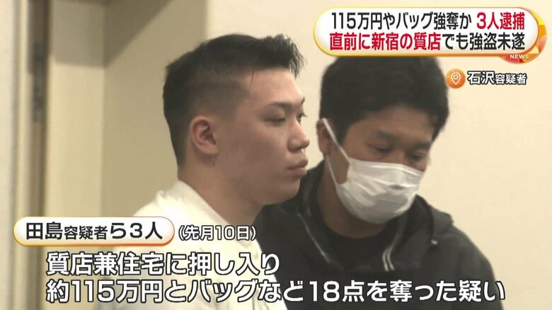 質店強盗で115万円やバッグなど奪ったか 実行役と見張り役の2…