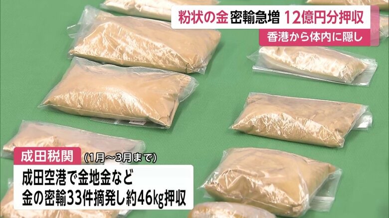 “粉状の金”密輸が急増 時価総額12億円分を押収 すべて中国…