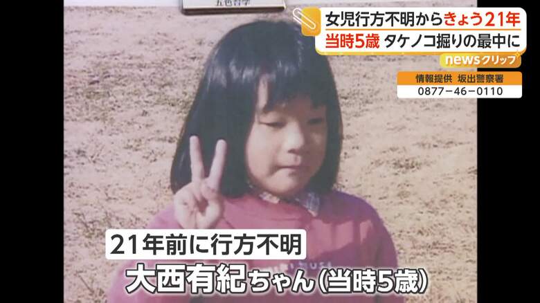 大西有紀ちゃん行方不明から21年 当時5歳 タケノコ掘りの最…