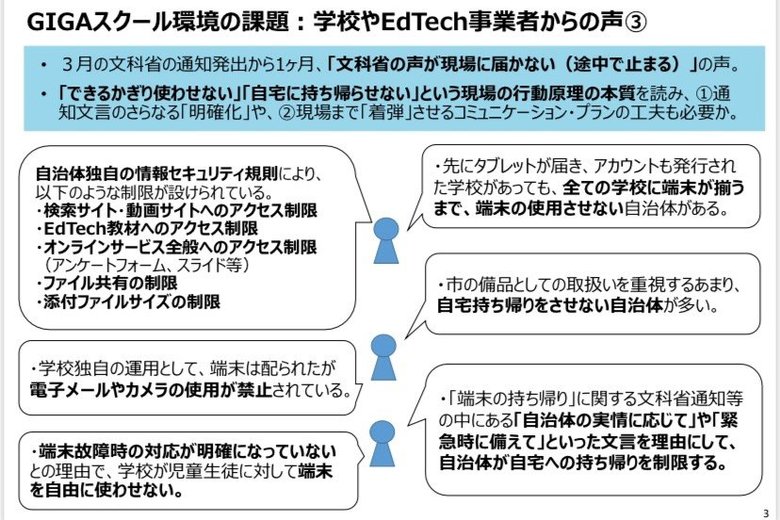 子どもの1人1台端末は“市の備品”ではなく「未来のツール」 … ギャラリー 1/4 記事に戻る 経産省が提出した資料には学校などの声が 2/4 記事に戻る 萩生田文科相「各学校や自治体によって様子が違うと思う」 3/4 記事に戻る 遠藤元オリパラ担当相「無理をすると教育現場が混乱するケースも」 4/4 記事に戻る