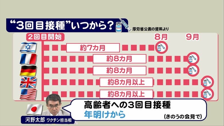 高齢者等リスク高い人を対象とする国多く…「3回目接種」先行…