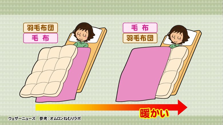 羽毛布団と毛布「どちらが上か」 かける順番で温かさに違い……