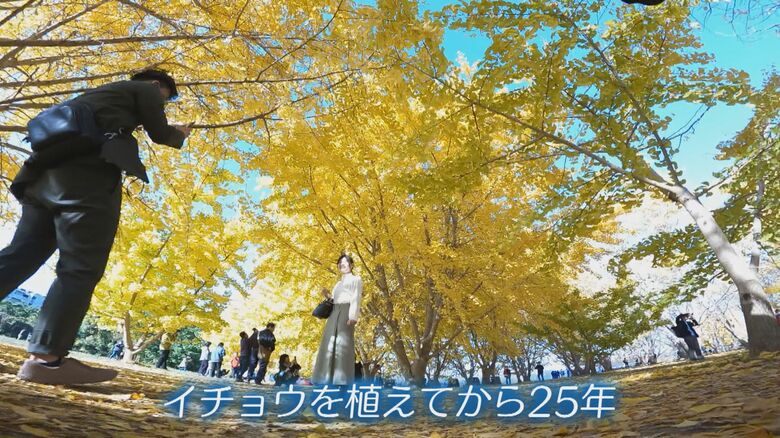 黄金に色づく「イチョウの森」誕生秘話 畑に植えた苗が絶景ス…