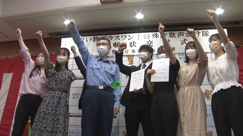 特殊詐欺を食い止めろ!「声かけ隊」発足 東京・多摩市 ATM… ギャラリー 1/4 記事に戻る 「買い物プラスワン!特殊詐欺声かけ隊」(6月28日 多摩中央署) 2/4 記事に戻る 取材に応じる帝京大学アメフト部・松本陽さん 3/4 記事に戻る 取材に応じる駒沢女子大学アクティ部のメンバー 4/4 記事に戻る