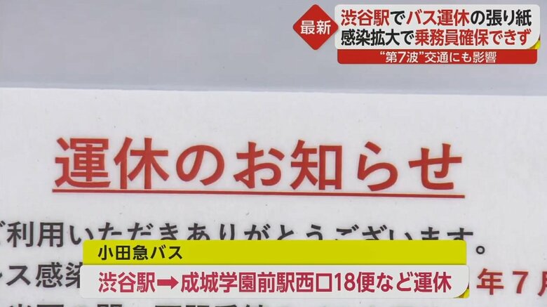 “大幅な運休”でバス停に長い列 第7波の影響で乗務員確保で…