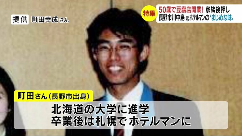 50歳で豆腐店開業・・・夫の挑戦を妻が後押し 元ホテルマンの… ギャラリー 1/19 記事に戻る 長野駅前の飲食店「山の間ブルワリー&クラフトビアパブ」の冷やっこ 2/19 記事に戻る 豆腐店「かまおこせ」(長野市) 3/19 記事に戻る かまおこせ・町田幸成店主 4/19 記事に戻る 長野市産の大豆「ひとり娘」 5/19 記事に戻る かまおこせの豆腐 6/19 記事に戻る 7/19 記事に戻る 提供・町田幸成さん 8/19 記事に戻る 9/19 記事に戻る かまおこせを開業(提供・町田幸成さん) 10/19 記事に戻る 11枚目以降の画像を見る 1 2
