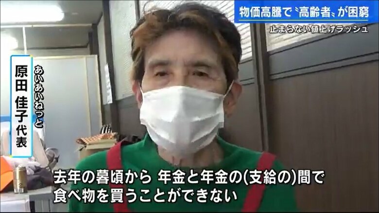 「冷蔵庫の中、何もないでしょ」物価高が高齢者を直撃 困窮が… ギャラリー 1/20 記事に戻る 2/20 記事に戻る 3/20 記事に戻る フードバンクの配布食材 4/20 記事に戻る 5/20 記事に戻る 6/20 記事に戻る 7/20 記事に戻る あいあいねっと 原田代表 8/20 記事に戻る 林昇さん(76) 9/20 記事に戻る 10/20 記事に戻る 11枚目以降の画像を見る 1 2