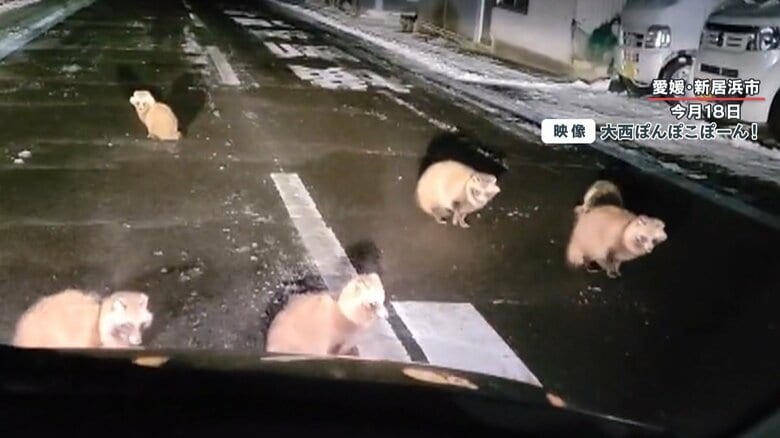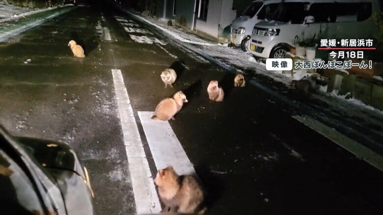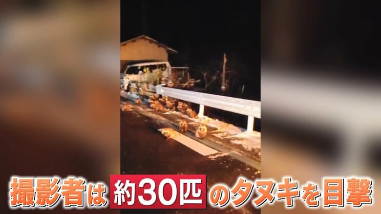 【驚愕】30匹のタヌキが車を包囲!もふもふパラダイス勃発か?