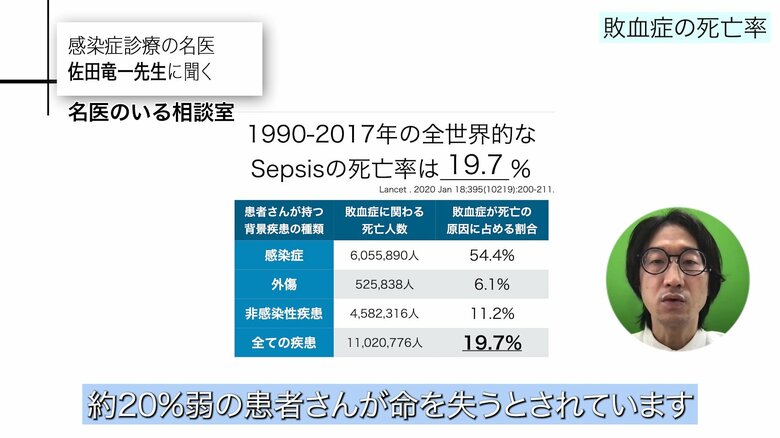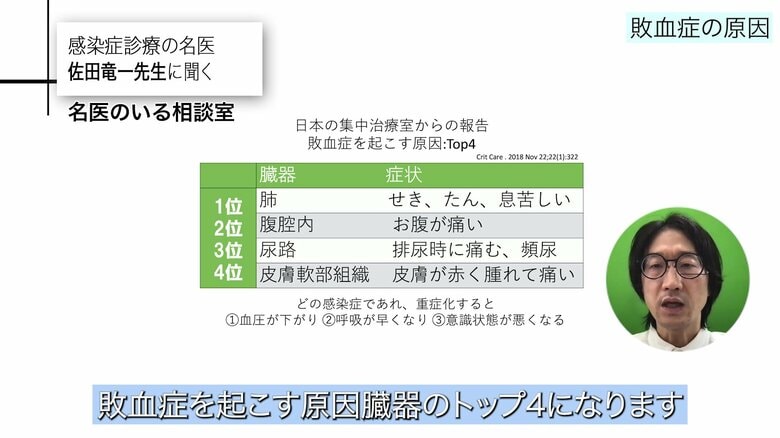 渡辺徹さんの死亡原因「敗血症」日常生活に異変を感じたらすぐ… ギャラリー 1/14 記事に戻る 2/14 記事に戻る 3/14 記事に戻る 4/14 記事に戻る 5/14 記事に戻る 6/14 記事に戻る 7/14 記事に戻る 8/14 記事に戻る 敗血症の評価ツールの1つ「quick SOFA」 感染症が疑われる患者で2点以上あれば敗血症の疑い 9/14 記事に戻る 10/14 記事に戻る 11枚目以降の画像を見る 1 2