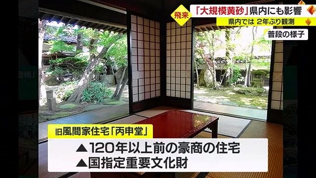 山形県内2年ぶり“黄砂”観測で各地に影響…「6月ごろまで続く… ギャラリー 1/9 記事に戻る 2/9 記事に戻る 3/9 記事に戻る 4/9 記事に戻る 5/9 記事に戻る 旧風間家住宅の「丙申堂」 6/9 記事に戻る 7/9 記事に戻る 8/9 記事に戻る 9/9 記事に戻る