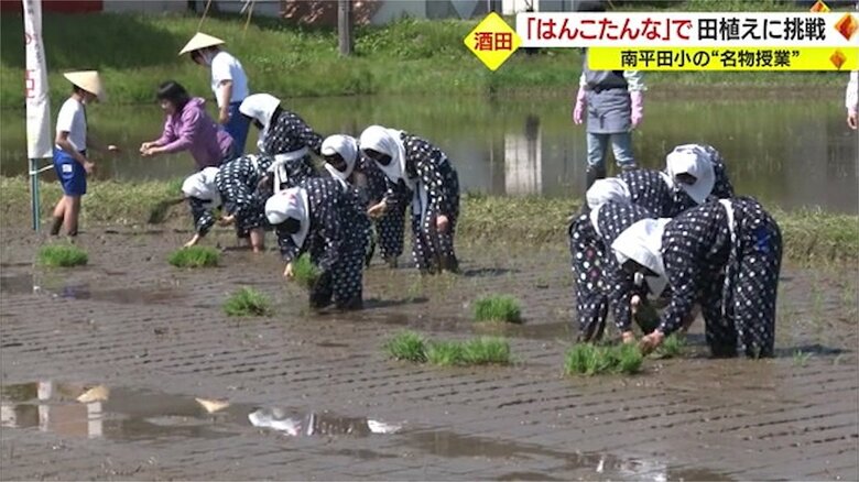 子どもたちが菅笠・はんこたんな姿で田植えに挑戦 田んぼに足… ギャラリー 1/8 記事に戻る 菅笠を身につけ田んぼに向かう 2/8 記事に戻る 3/8 記事に戻る はんこたんな姿で田植えに臨む児童 4/8 記事に戻る 鳥海山望む田植え日和に… 5/8 記事に戻る 山形・酒田市 南平田小学校の“名物授業” 6/8 記事に戻る 足が抜けない…はだしでの田植えに苦労 7/8 記事に戻る 秋には自分たちで稲刈りも 8/8 記事に戻る