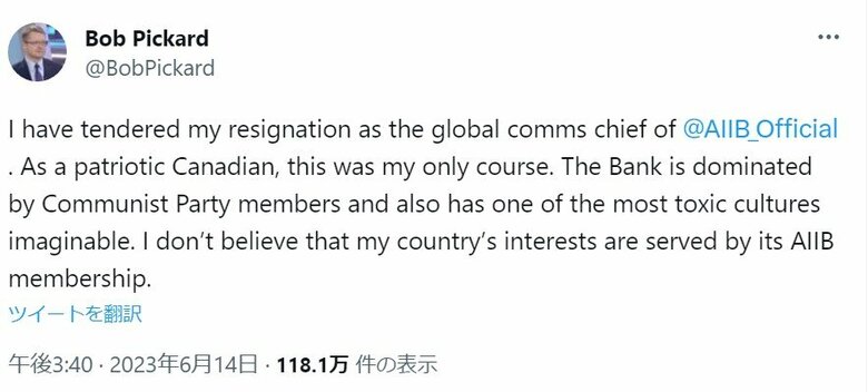 カナダが中国主導のAIIB活動中断を発表
