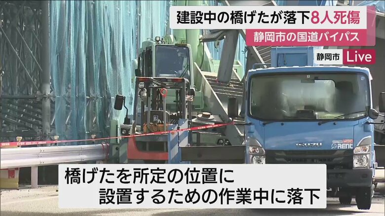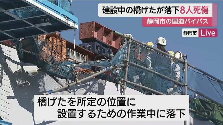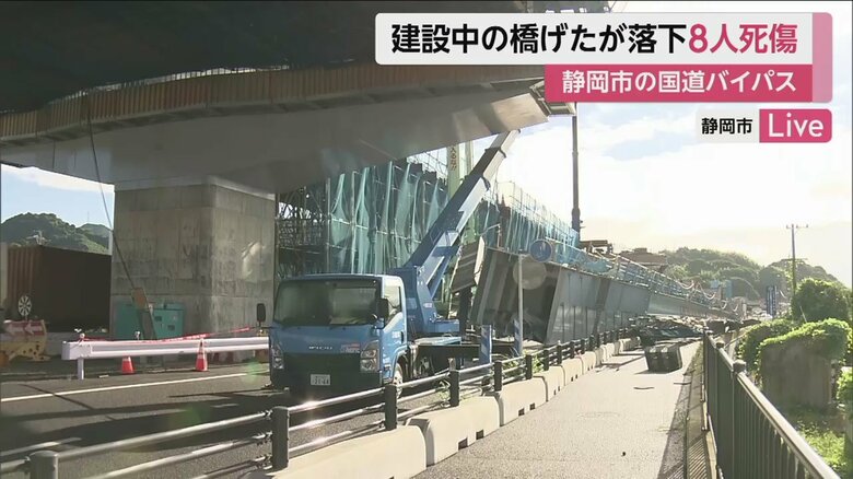 【続報】約140トンの橋げた落下、2人死亡6人けが 立体化に向… ギャラリー 1/15 記事に戻る 6日午前11時半ごろの現場。落下した橋げたはそのままに、警察の見分が続いている 2/15 記事に戻る 国道1号線「静清(せいしん)バイパス(静岡市清水区)」で立体化に向けた工事中の事故だった 3/15 記事に戻る 橋げたを所定の位置に設置するための作業中に落下したという 4/15 記事に戻る 落下した、巨大な鉄製の橋げた 5/15 記事に戻る 50代の作業員2人が犠牲となった 6/15 記事に戻る 作業員のほか、交通誘導員もけが。計8人が死傷した 7/15 記事に戻る 8/15 記事に戻る 9/15 記事に戻る 10/15 記事に戻る 11枚目以降の画像を見る 1 2